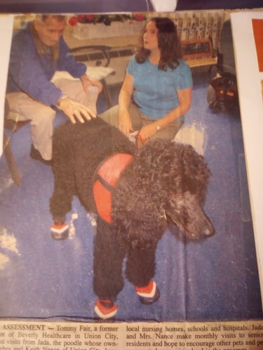 Kathy became a handler in 2000 with her first Therapy Animal, Sienna. In early 2001, Kathy and Sienna were part of the core group that established Tender Paws at Gateway Hospital (now Tennova). She took on the role of Evaluator and Training Director in addition to being a visiting team.